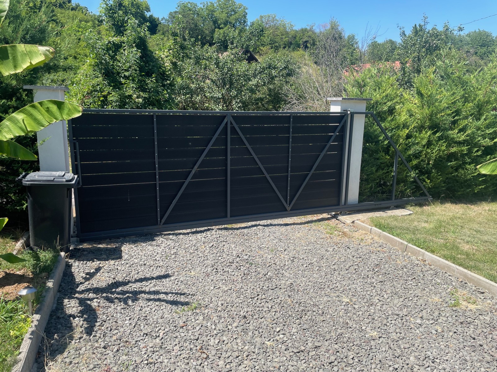 Az ingatlanra egy WPC úszókapun (nem automata) keresztül jutunk be, ahol 4 állásos, kavicsos kocsibeálló várja a gépkocsival érkezőket. A kert füvesített front részén leylandi fenyőt, banánfákat, vörös japán juhart és tulipánfát is találunk, amit a jelenlegi tulajdonosok ültettek.