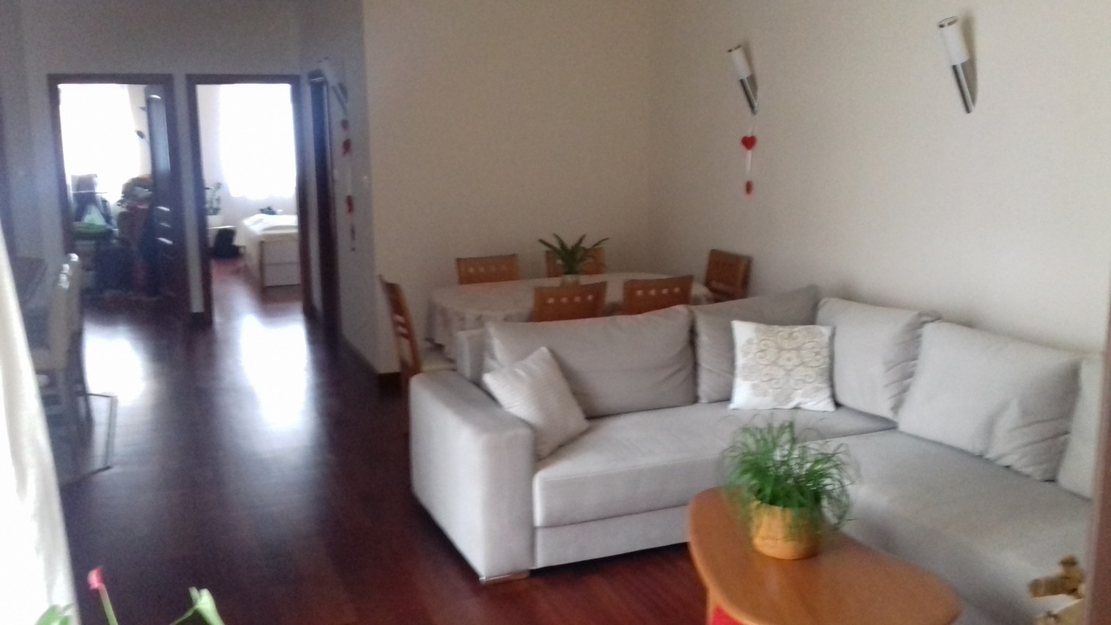 Szoba 1.: argentín cseresznye padlóburkolat, energia takarékos mennyezeti világítás, kábeltévé bekötés.